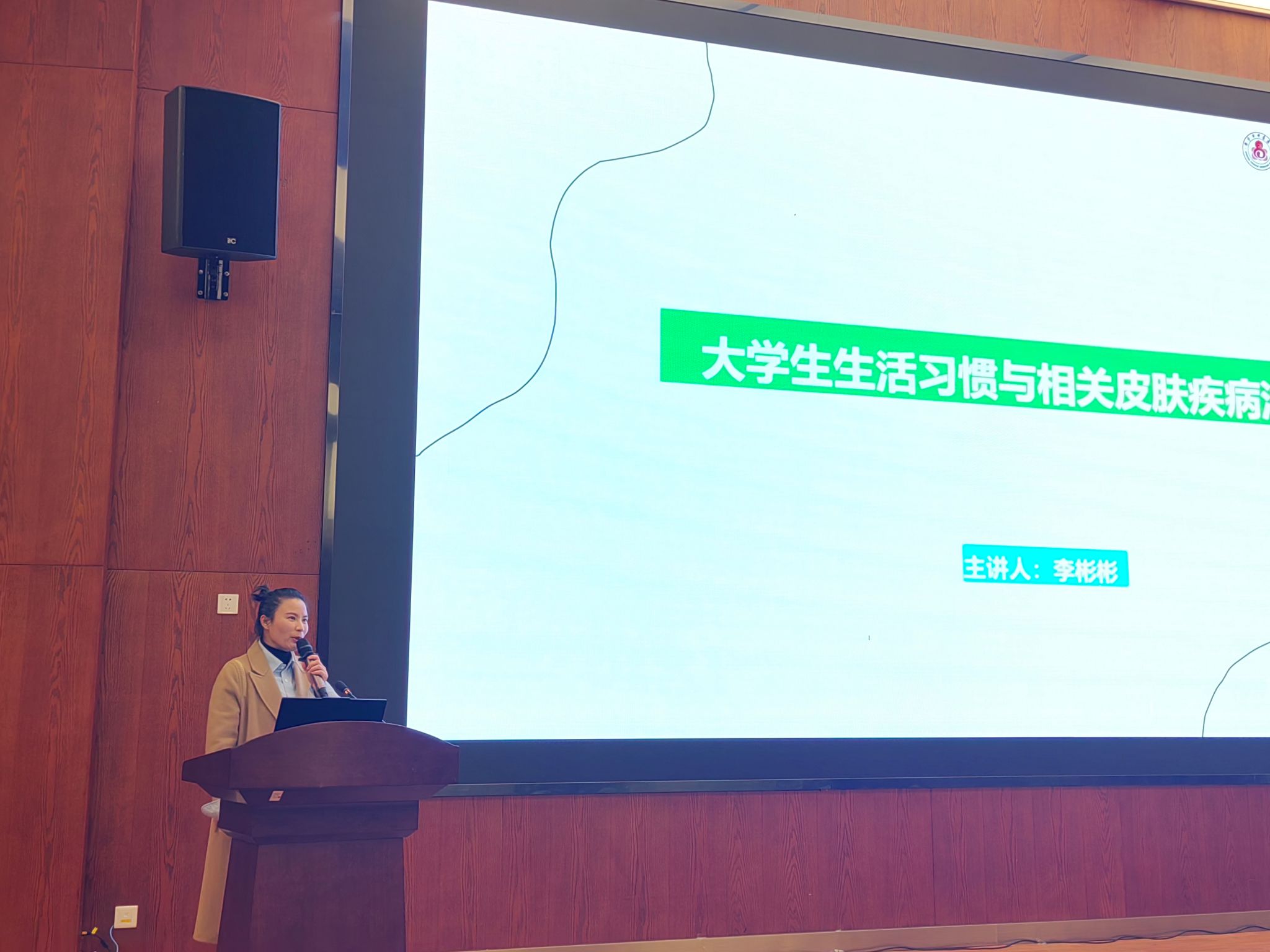 詹冶颖和李彬彬围绕艾滋病、梅毒和丙肝防治知识及大学生生活习惯与皮肤健康问题,进行了系统专业的讲解,并与学生现场互动。