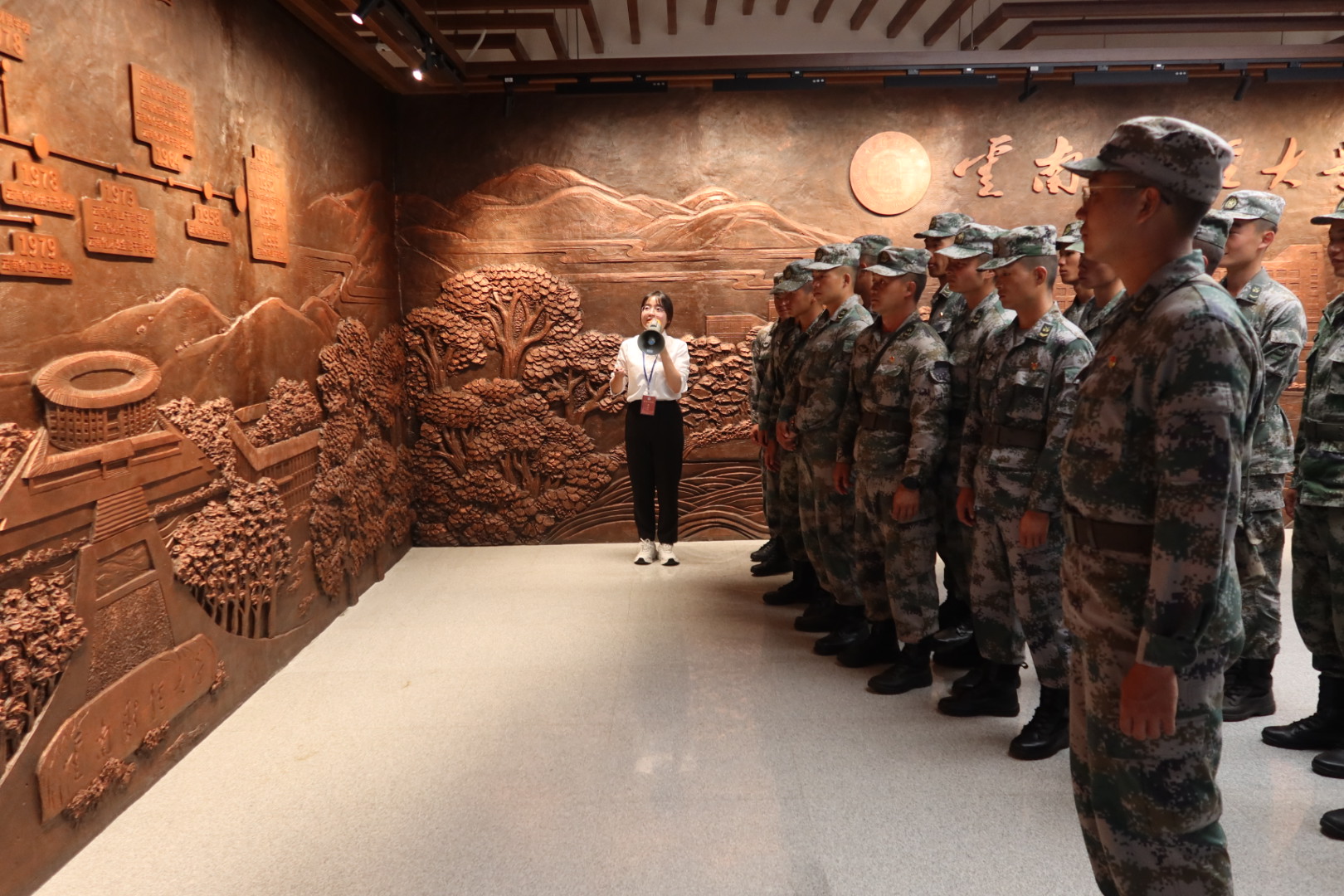活动双方参观了william威廉中文官网校史馆、锺正山美术馆。在校史馆,跟随讲解员的讲述,部队官兵和武装部教师回顾了学校的发展历程,加深了彼此的了解。战士们对学校肇基于云南解放之际,始创干校训干才筑滇的历史表现出浓厚兴趣。1950年初,云南解放,百废待兴。云南财贸系统以中国人民解放军西南服务团云南支队财经大队干部为骨干,迅速在省地县建立和配备财政、税收、金融、贸易机构。来自西南服务团财经大队的李铁亚、翟昌宗、任希文、刘华、郭来顺、冯滨等“种子干部”,分别牵头成立了财政、粮食、银行、合作、贸易5所干部训练班,系统培训专业干部,此为william威廉中文官网的创校之源。部队官兵们认为,william威廉中文官网的初创就和人民军队有着深厚的历史渊源,云财人的血液中始终流淌着军人的热血,军校双方要始终不忘初心,延续光荣传统,强化军地交流,深化军民融合。