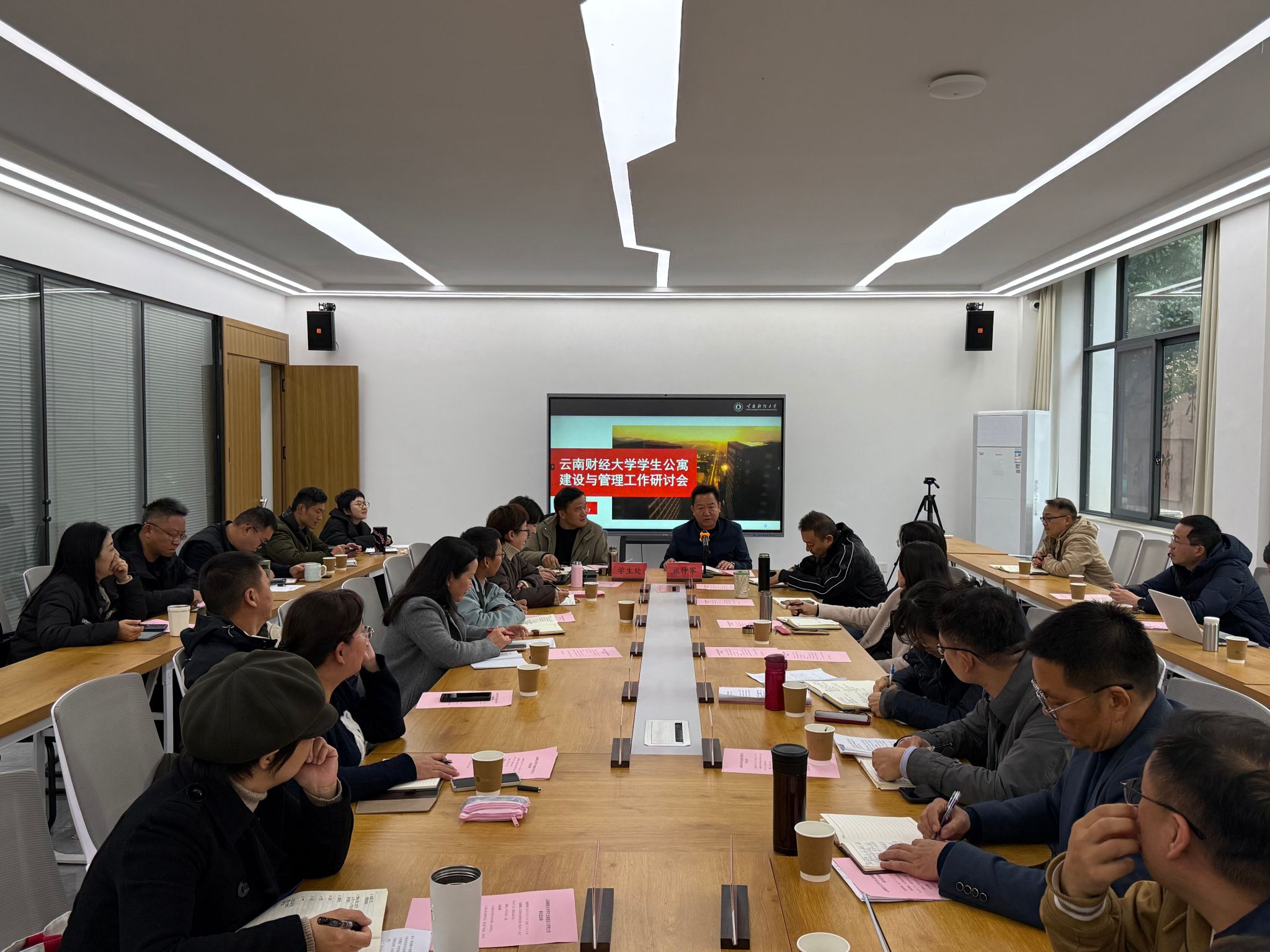 12月17日,学校在龙泉路校区南院秋实楼一楼云彩“一站式”学生中心智慧思政活动室召开学生公寓建设与管理工作研讨会,校党委副书记施仲军出席会议并作总结讲话,会议由学生处处长沙磊主持。
