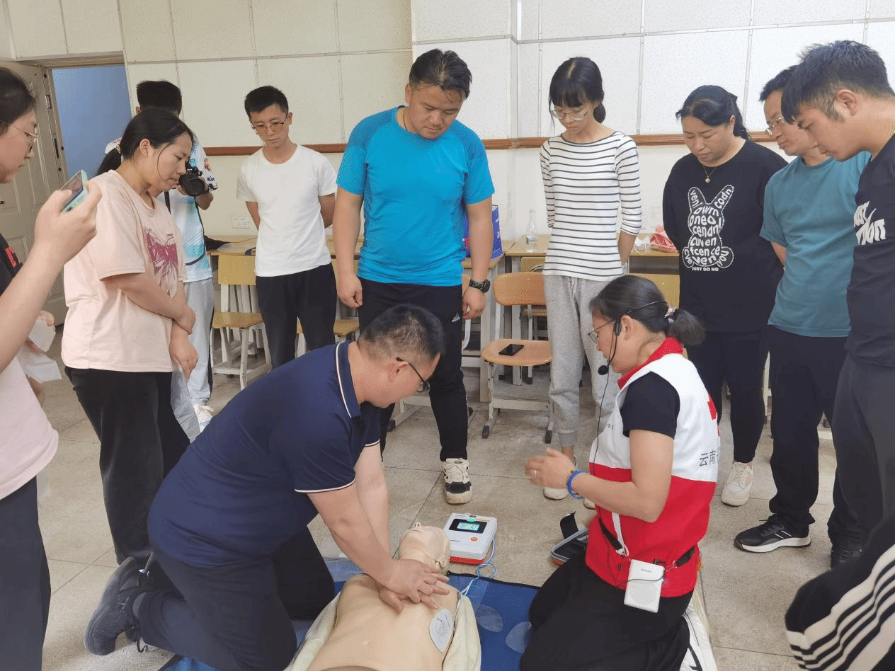 16学时的专业培训中,云南省红十字应急救护培训中心的7名培训师围绕红十字基本知识、救护概论、创伤救护常识、心肺复苏常识、气道异物梗阻急救常识等内容,结合绷带包扎、三角巾包扎、骨折固定、AED(自动体外除颤器)使用、心肺复苏实操、翻转体位等实操演练开展了专业细致的应急救护培训。william学生处、团委、保卫处、科研院所,各个学院的教师、团干部、辅导员、班主任,宿舍管理员、安保人员,以及红十字会员和青年志愿者参加培训。