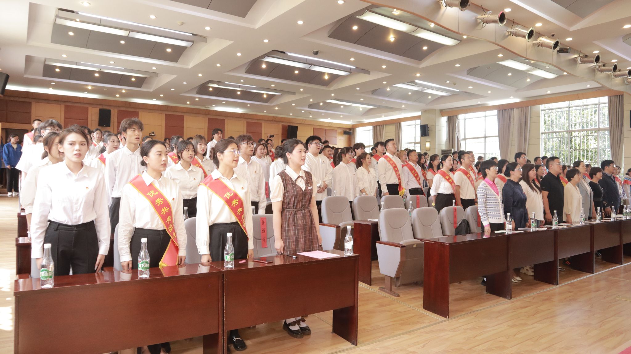 大会在庄严的国歌声中拉开帷幕,校团委书记舒挺带领全体团员重温入团誓词。
