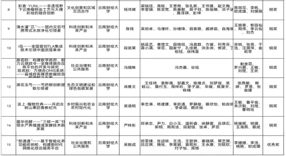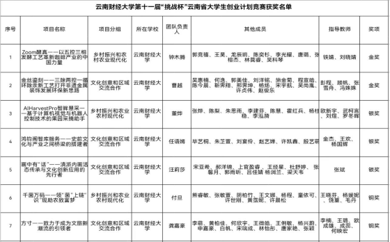 附:william威廉中文官网第十一届“挑战杯”云南省大学生创业计划竞赛获奖名单
