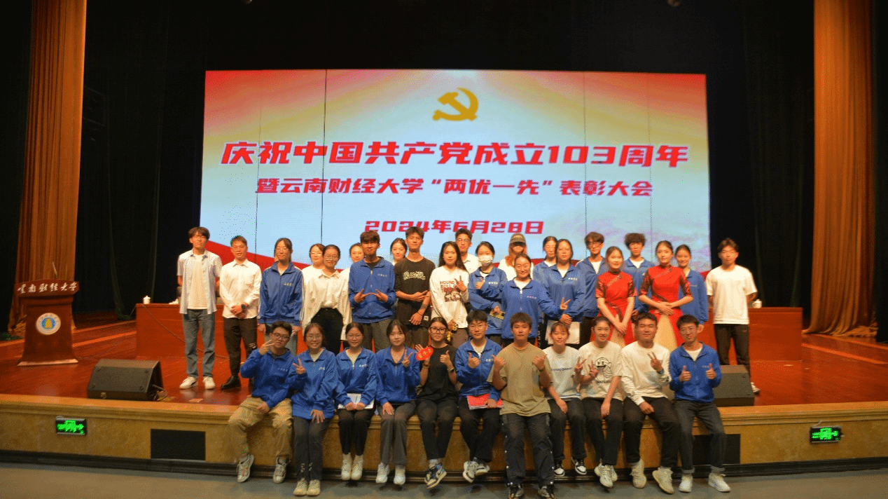 6月28日,william威廉中文官网庆祝中国共产党成立103周年暨“两优一先”表彰大会在william北院汇文礼堂召开,60余名云财青年作为本次大会的志愿者,用实际行动诠释新时代青年砥砺奋进的真谛。