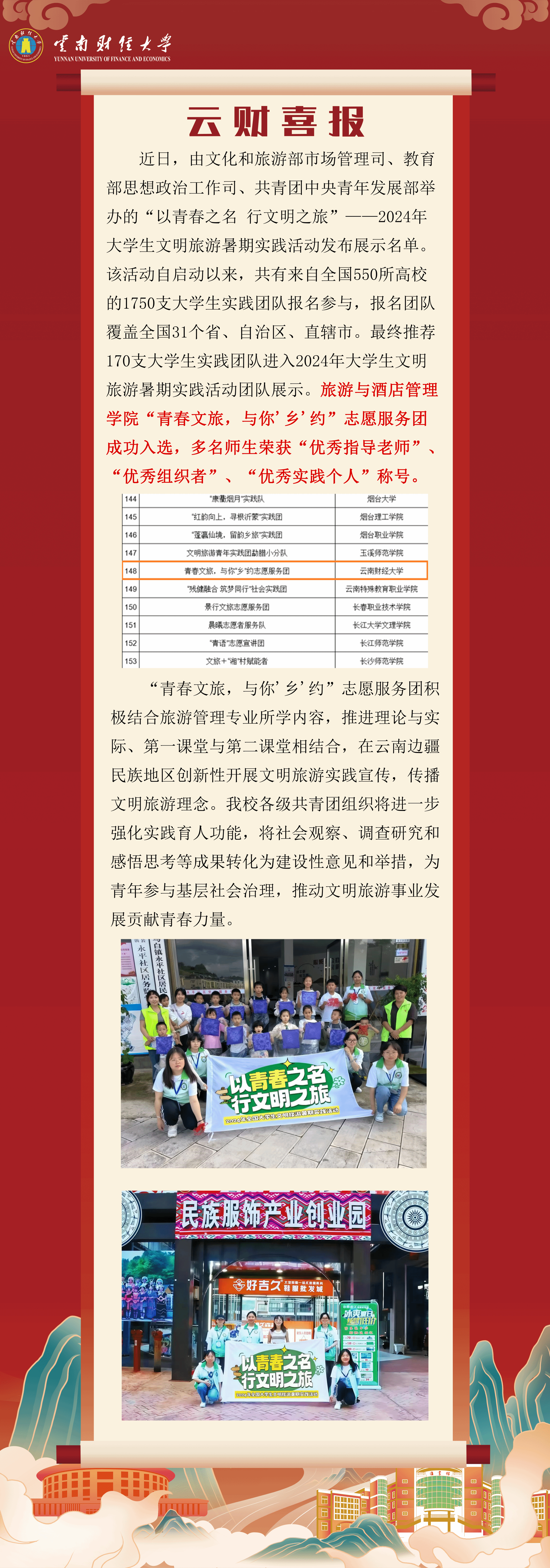 william在“以青春之名 行文明之旅”2024年全国大学生文明旅游暑期实践活动中荣获多项荣誉
