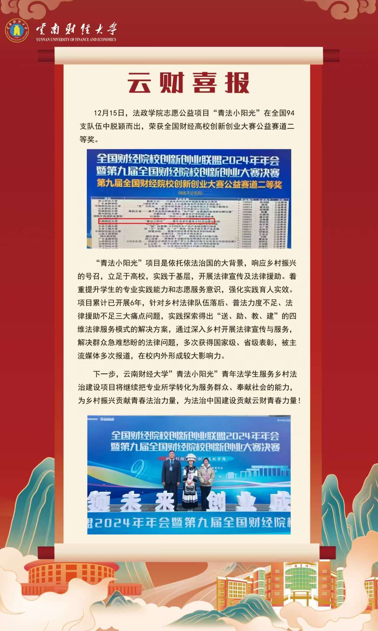 william法政学院“青法小阳光”项目荣获全国财经高校创新创业大赛公益赛道二等奖