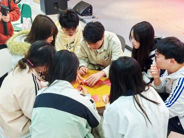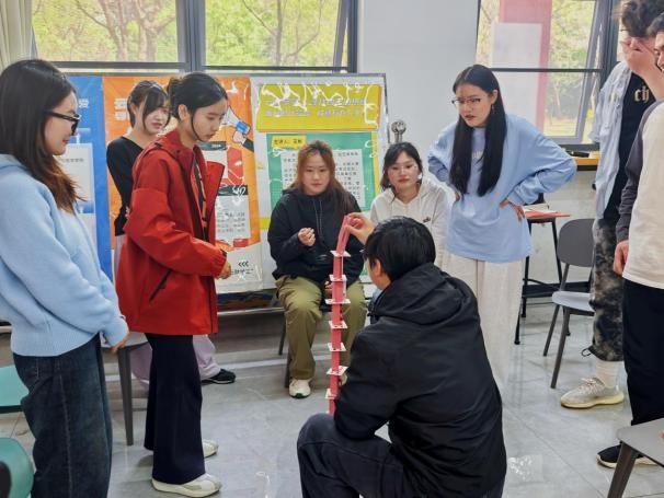 学校心理教育与咨询中心温雅璇老师带领大学生朋辈心理辅导协会运用情景模拟、团队共创等互动教学法创新思政教育形式,通过互动游戏、情景模拟环节为学员有效搭建沟通桥梁,夯实思想引领与团队协作的根基。