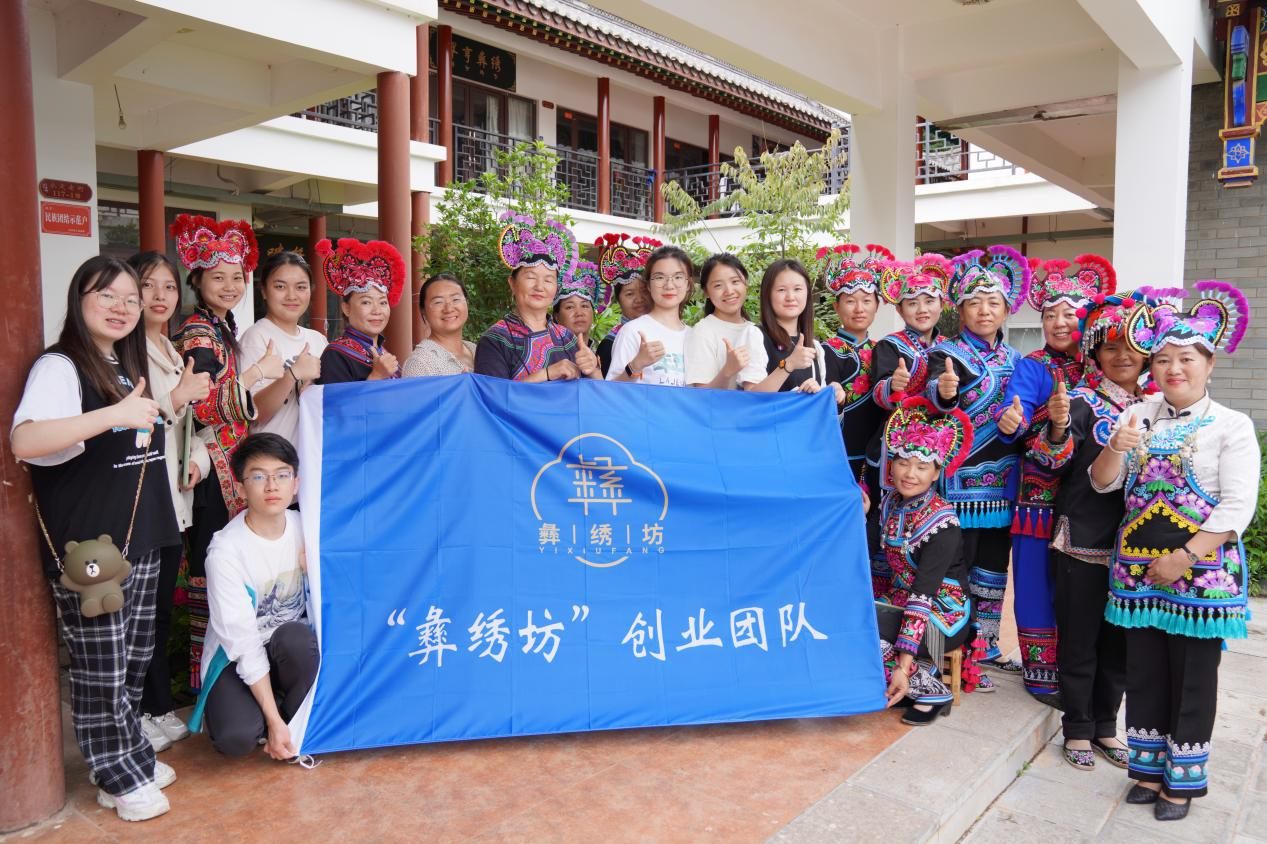 项目名称:彝绣坊—国家级非物质文化遗产“彝族刺绣”的传承与创新;团队成员:王歆婷 雷云潇 杨淑新 王卓君 曾婷;指导教师:曾蕾 舒挺 李昀璟 欧成雄 王欢。