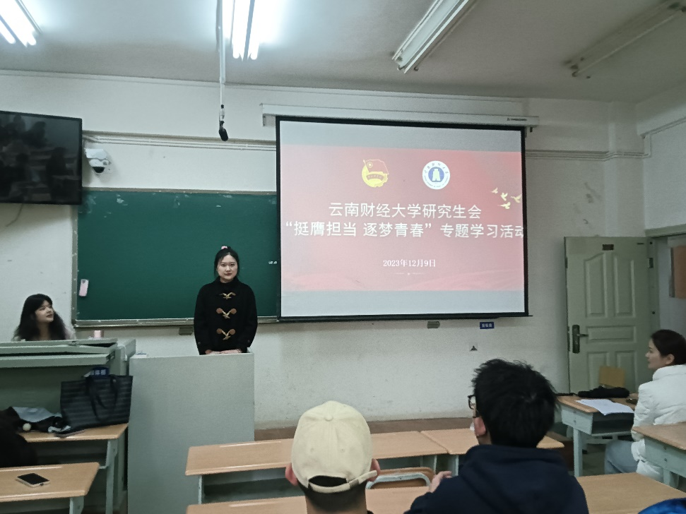 为深入学习贯彻习近平总书记关于青年工作的重要思想,12月9日晚,研究生会在北院卓远楼206开展“挺膺担当 逐梦青春”专题学习活动,本次专题学习由许雨璠主讲,研究生会全体工作人员积极参加。