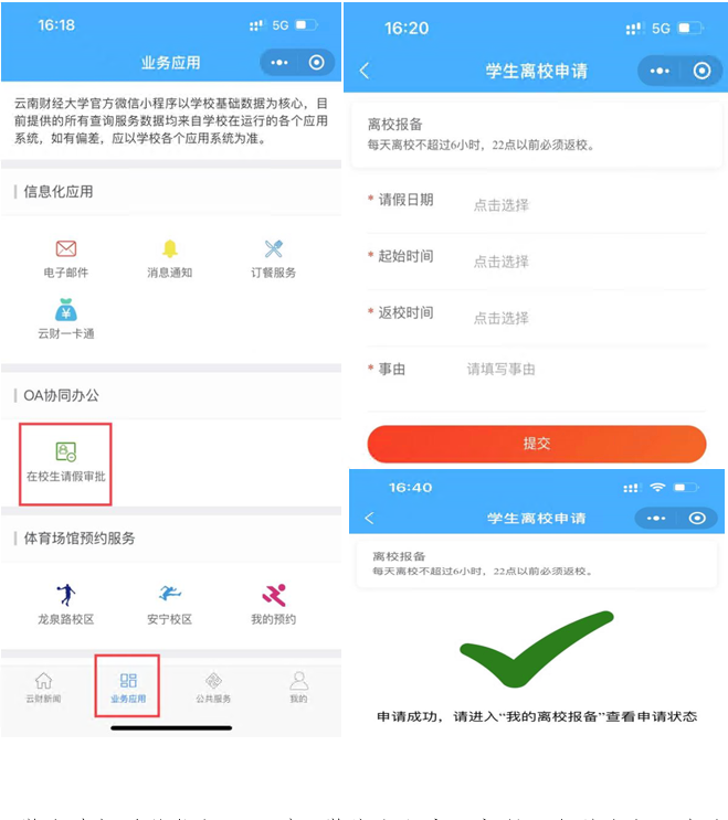 当前,疫情防控形势稳步向好,为配合学校继续抓好常态化疫情防控,动态调整校园管控工作,william威廉中文官网信息管理中心开发了学生请假系统,并于5月20日上线运行。