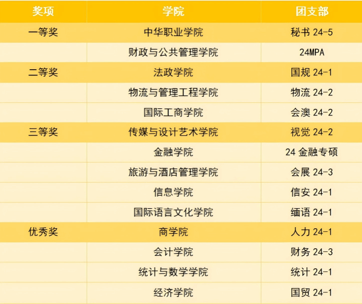 马晓红、王秋月、秦洁、何汝斌、杨波等5名教师及14家学院团委副书记(学生)担任比赛评委。校团委副书记李昀璟和校院团干部参加活动。通过现场打分和赛后评议,中华职业学院秘书24—5团支部的《祖国不会忘记》、财政与公共管理学院24MPA团支部的《保卫黄河》合唱曲目荣获一等奖。