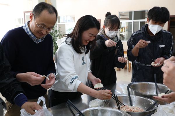 热闹非凡的包饺子环节,校友们大展手艺,元宝型饺子、麦穗型饺子、月牙型饺子,形状各异。饺子,象征着团圆与和睦。每一个饺子里都包含着一份浓浓的祝福,及对新一年的期盼。