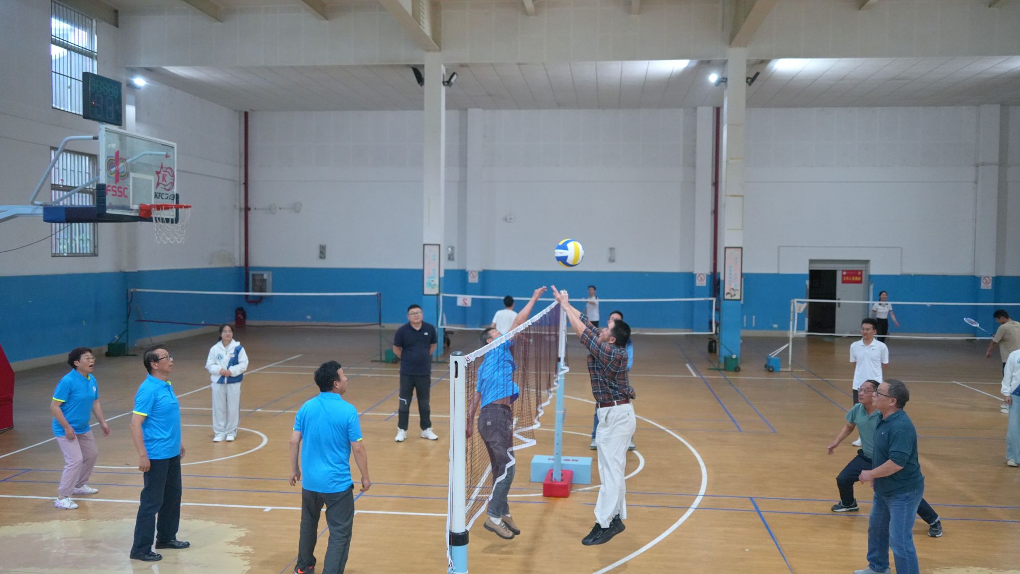座谈会现场气氛热烈而温馨,校友们相互问候,畅聊各自的情况,追忆当年同窗趣事。会后,校友们参观了校史馆,在逸夫楼前合影留念,并在体育馆举办了气排球友谊赛,重温校园时光。
