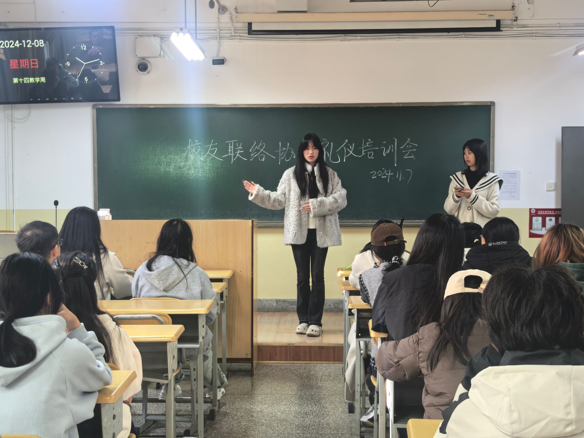12月8日上午,校友联络协会“礼仪魅力 校友风范”礼仪培训会在学校南院凌媒北203教室举行,此次活动由校礼仪队协助举办。