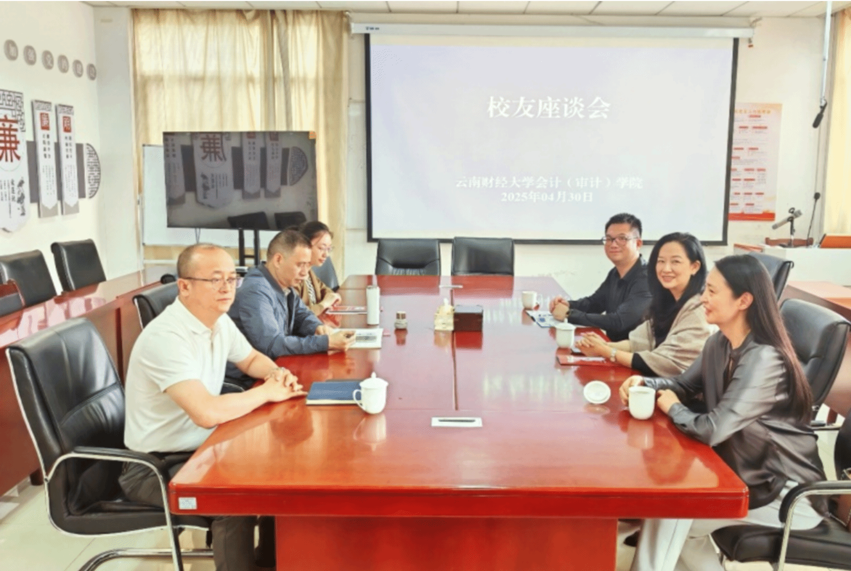 在“校友协同创新”主题座谈会上,梁金祥一行分别与商学院、会计(审计)学院、国际工商学院、法政学院等学院和分会负责人,围绕加强校友组织联动、促进学科交叉融合、推动产业资源反哺母校、支持青年学子就业创业进行了深入交流。