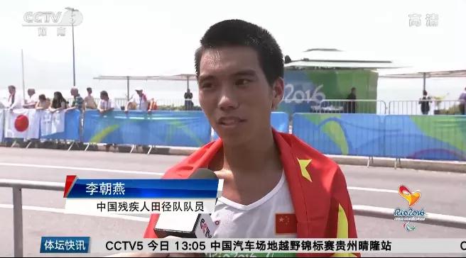 里约残奥会夺冠后接受央视采访画面