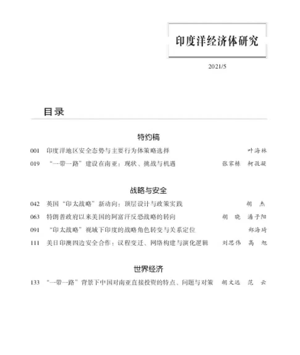【关键词】印度洋;中美关系;印度;“印太战略”