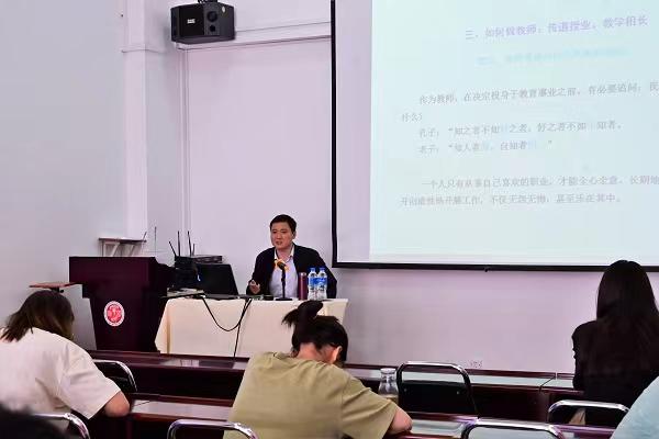 谢青松以《礼记·学记》中的“建国君民,教学为先”引入主题。从“教育的意义、教育的方法、如何做教师”三个方面为大家详细讲述了中国古人的教育理念及其当代的启示。他指出,在中国古人看来,教育的意义,不仅仅在于学习知识、掌握技能,更为重要的是唤醒智慧、解放心灵,培养出一个大写的、完整意义上的人。真正的教师,不仅仅是知识和技能的传播者,更应当成为真理和智慧的“助产婆”。故而,厘清自己的头脑,完善自己的人格,净化自己的心灵,不断提升自己的业务能力和人生境界,远远比盲目的努力更加重要。