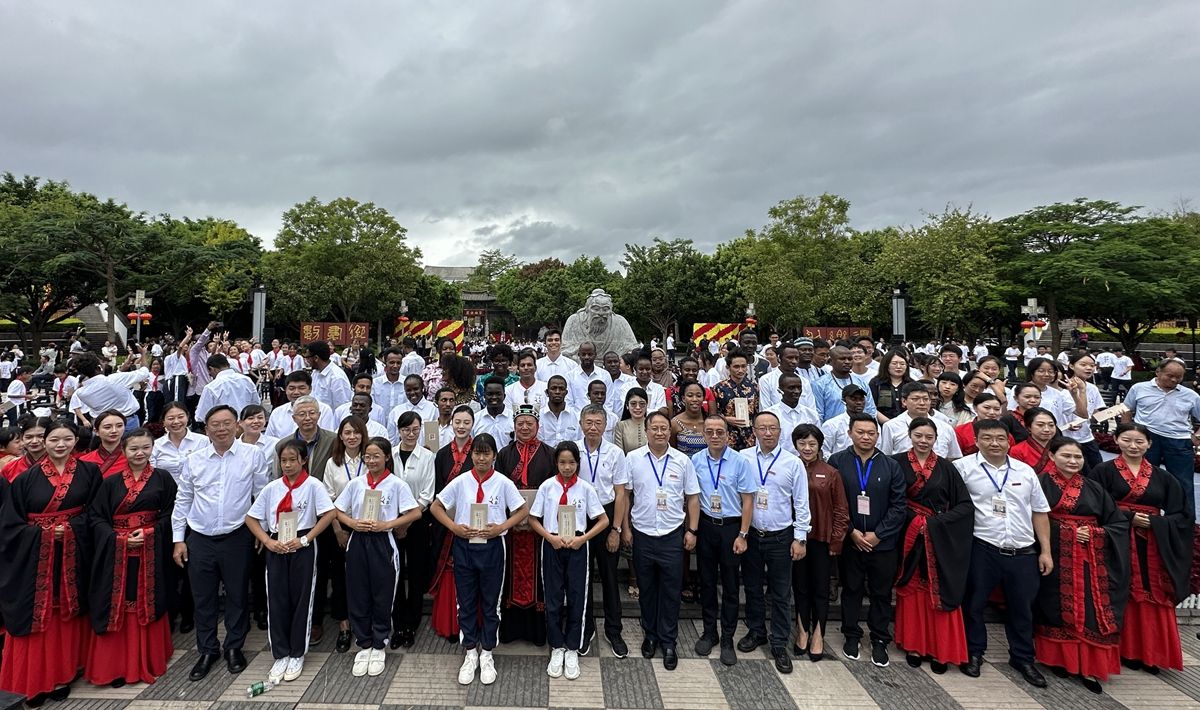 随着一声“仪式开始”,癸卯年纪念孔子诞辰2574年仪式在红河哈尼族彝族自治州建水县文庙拉开序幕。祭祀队伍过洙泗渊源牌坊,经杏坛,穿大成门,直至供奉孔子圣像的先师殿前,佾舞生随乐而动,伴着古朴典雅的吟唱,所有方阵肃目而立……在第17届中国红河·建水孔子文化节秋季祭孔仪式的祭祀队伍中,一支有着异国面孔的方阵尤其引人注目,成为整个祭孔仪式当中一道特别的风景线。
