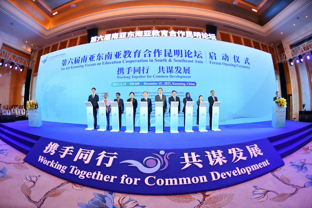 12月15日,以“携手同行 共谋发展”为主题的第六届南亚东南亚教育合作昆明论坛在昆明举行。教育部副部长陈杰、云南省人民政府副省长张治礼、中国教育国际交流协会副会长倪慧芳出席活动并致辞。