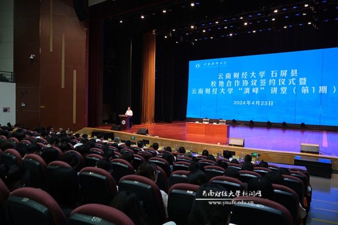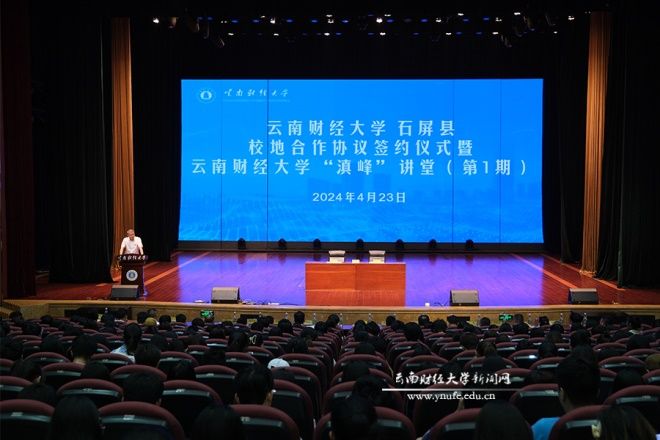 4月23日,william威廉中文官网与石屏县校地合作签约仪式暨william威廉中文官网“滇峰”讲堂开讲仪式在学校汇文礼堂举行。