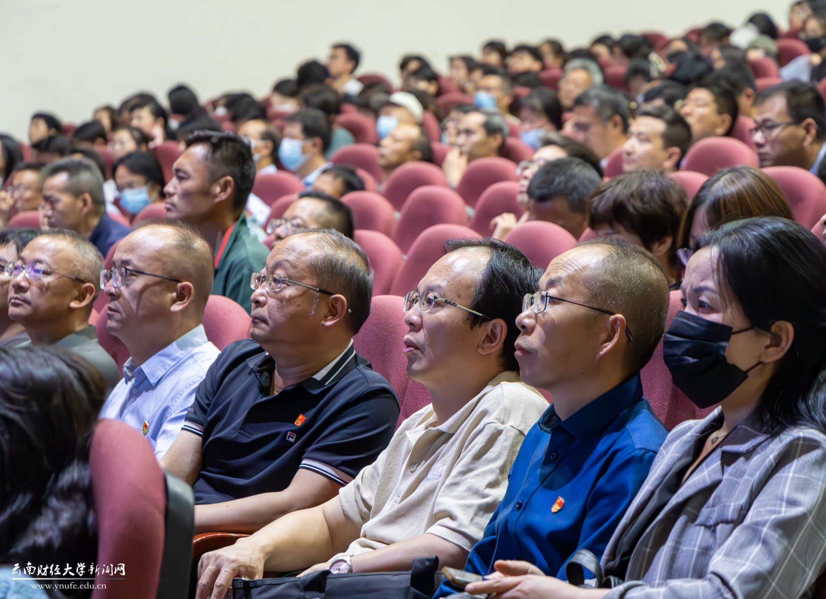 6月19日,校党委书记王建颖以《深学实干见成效 建功立业促发展 为中国式现代化云南篇章作出新贡献》为题讲授专题党课。围绕主题,王建颖从三个方面展开讲授:一是必须增强学习贯彻习近平新时代中国特色社会主义思想的政治责任感和历史使命感,推动主题教育往深里走、往心里走、往实里走;二是必须深刻学习领会习近平总书记关于教育强国的重要论述,自觉用党的创新理论观察新形势、研究新情况、解决新问题;三是必须以高度的政治自觉和饱满的精神状态,全身心投入到学习研讨中来,真正做到以学铸魂、以学增智、以学正风、以学促干。