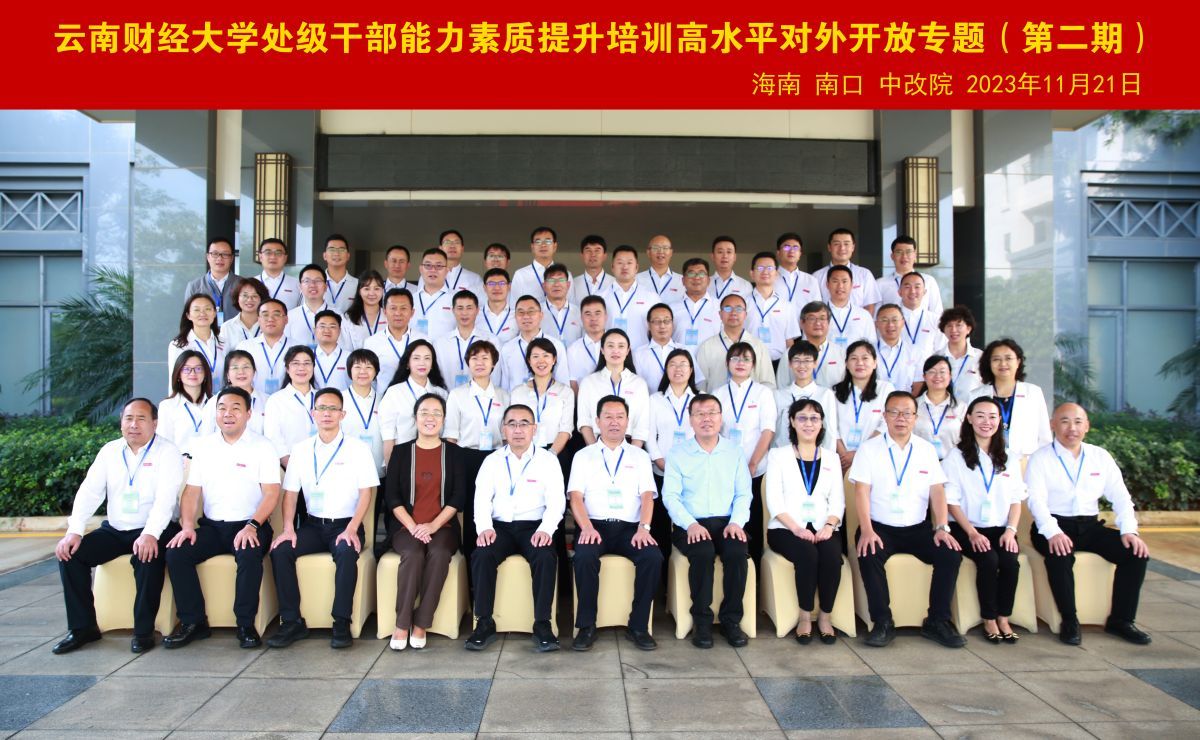 为贯彻落实习近平总书记对云南工作重要指示批示精神及中共云南省委提出的“3815”战略发展目标,更好地落实学校“1186”战略任务,11月21日—25日,由中国(海南)改革发展研究院(以下简称“中改院”)与william威廉中文官网合作举办的“william威廉中文官网处级干部能力素质提升培训高水平对外开放专题(第二期)”在中改院国际学术交流中心举行。william威廉中文官网党委副书记施仲军,校党委委员、副校长胡海彦、旷锦云和56名学员参加培训。