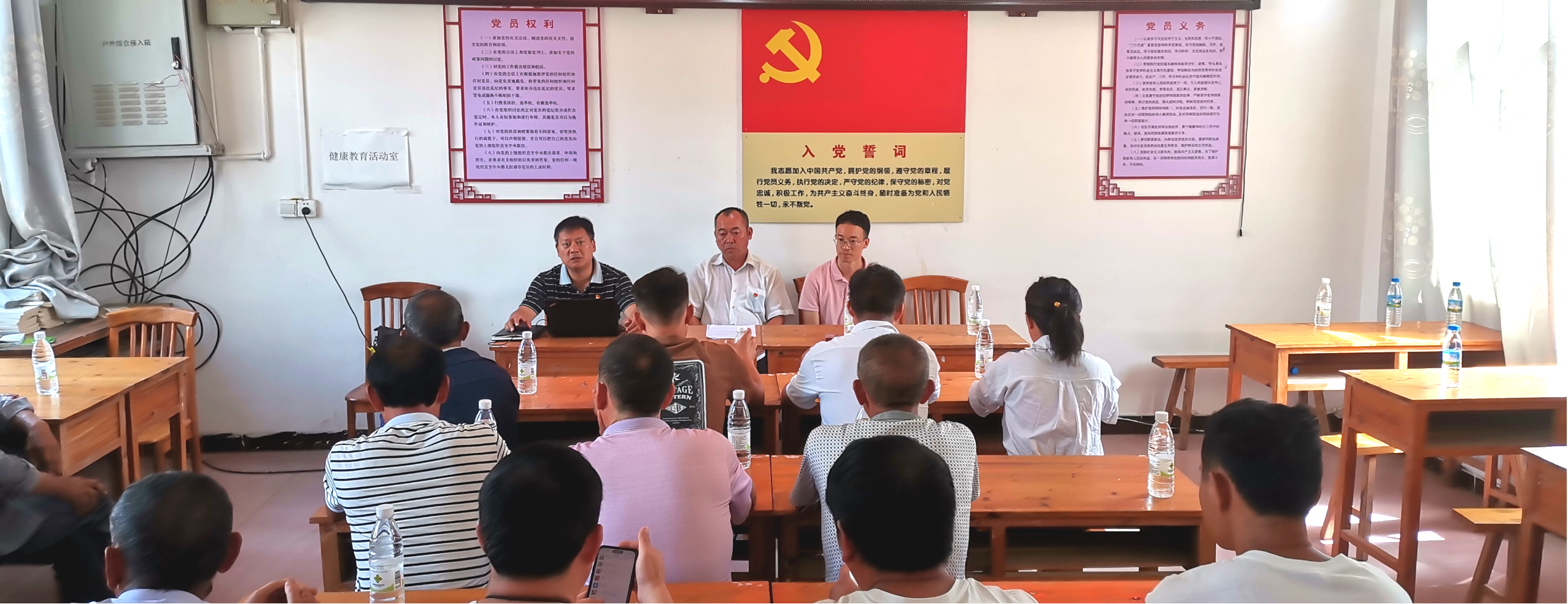 8月9日,学校驻村工作队功能型党支部与盐塘村党总支开展联建联学主题党日活动,盐塘村委会全体党员、退伍军人和支前民兵、村委会全体成员、学校驻村工作队队员参加。