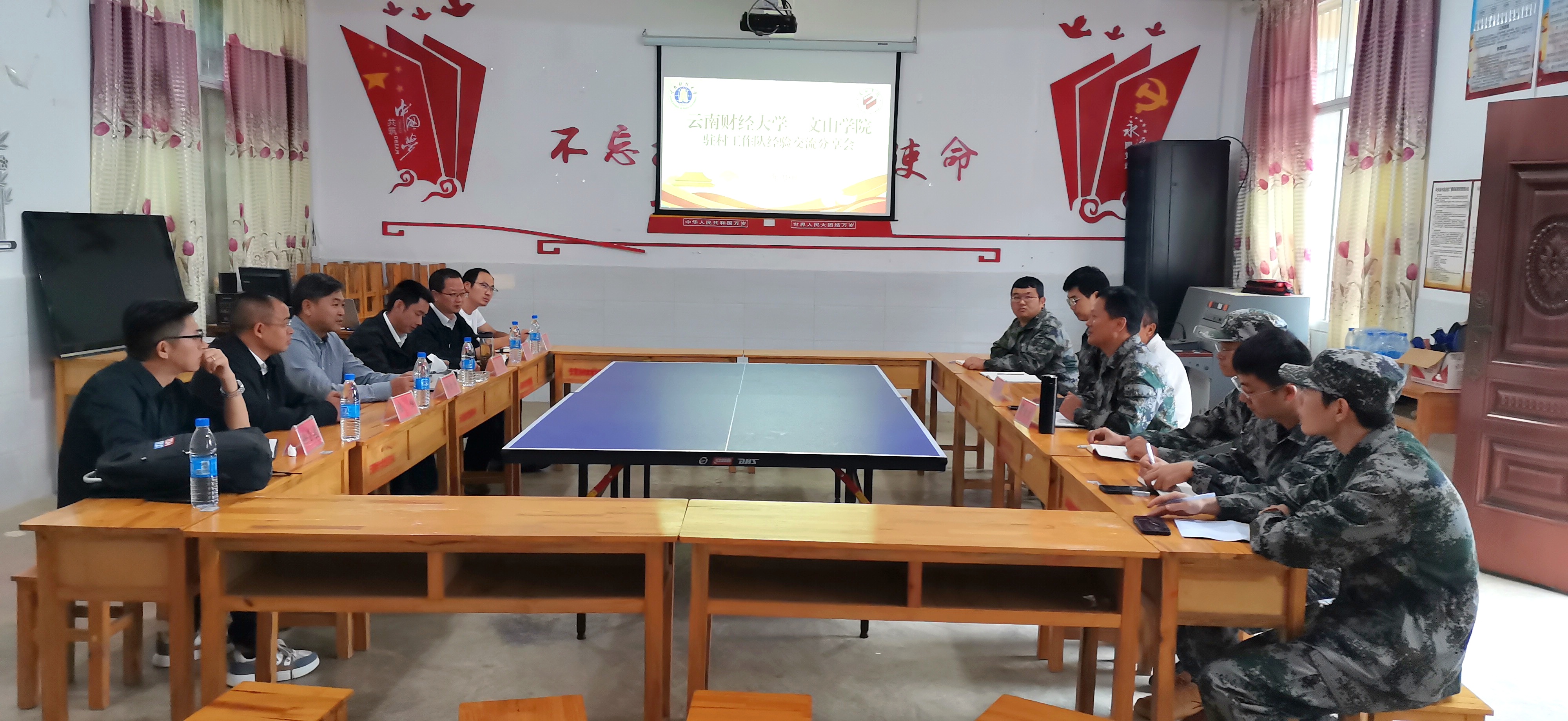 砚山县者腊乡党委副书记、乡长陆恒,者腊乡党委副书记、夸溪村工作队队长邵春河,者腊村工作队队长陈海涛,布那村工作队队长徐昌盈及学校全体驻村工作队员参加调研交流。