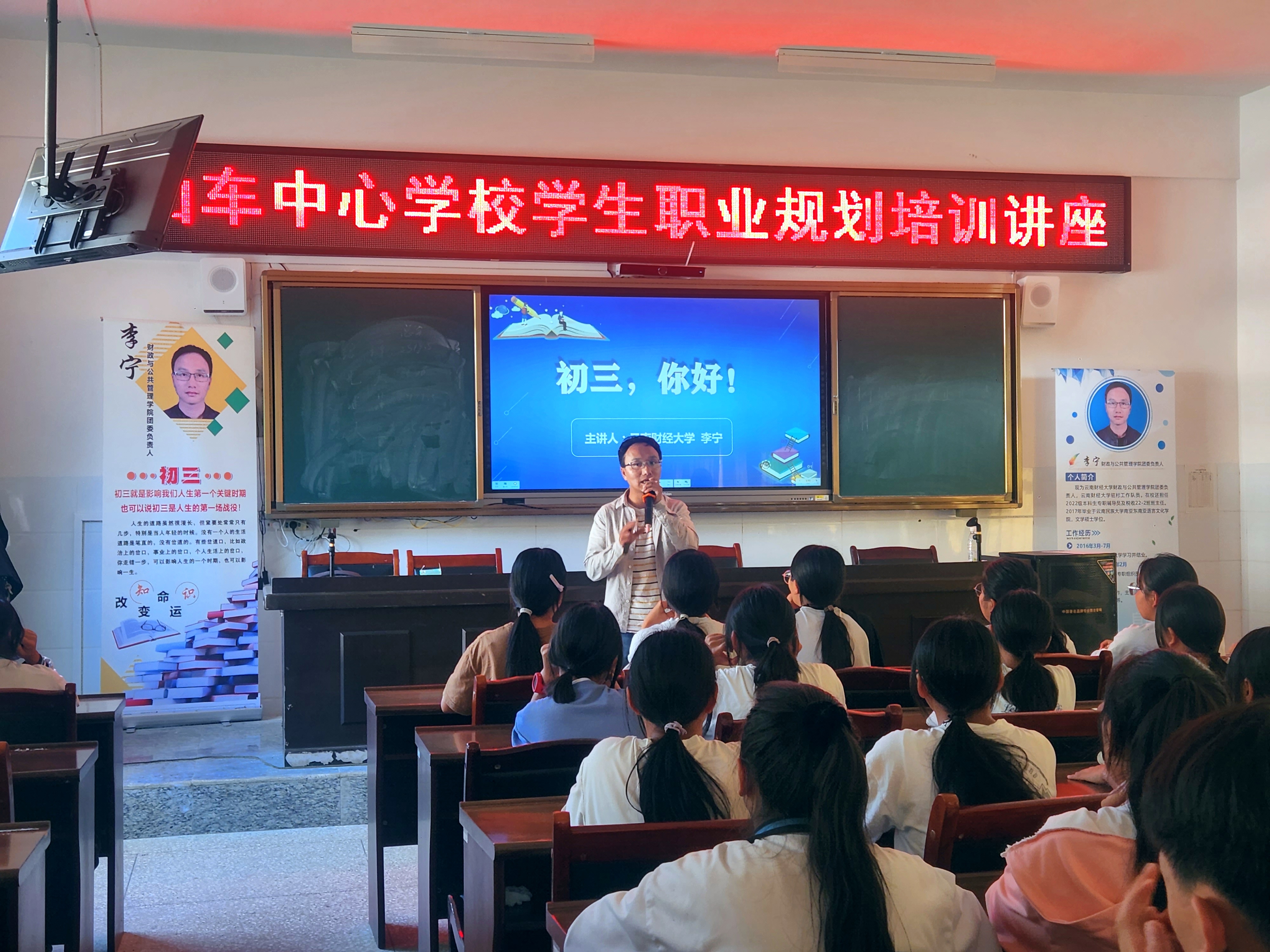结合近期驻村工作队入户走访情况,针对驻村点各阶段教育情况的调研以及山车中心学校凝聚人才优势开门办学的意愿,李宁以“初三,你好!”为主题,对该校初三学生开展学业生涯规划讲座。讲座主要从初三是什么、初三的“我们”、初三要怎样度过、初三毕业后的出路及“我们”身边的榜样五个方面进行分享交流,并通过对山车中心学校3名优秀毕业生案例的分享,鼓励和引导同学们要树立远大理想,以坚韧、自信的姿态勇敢迈开成长的步伐。