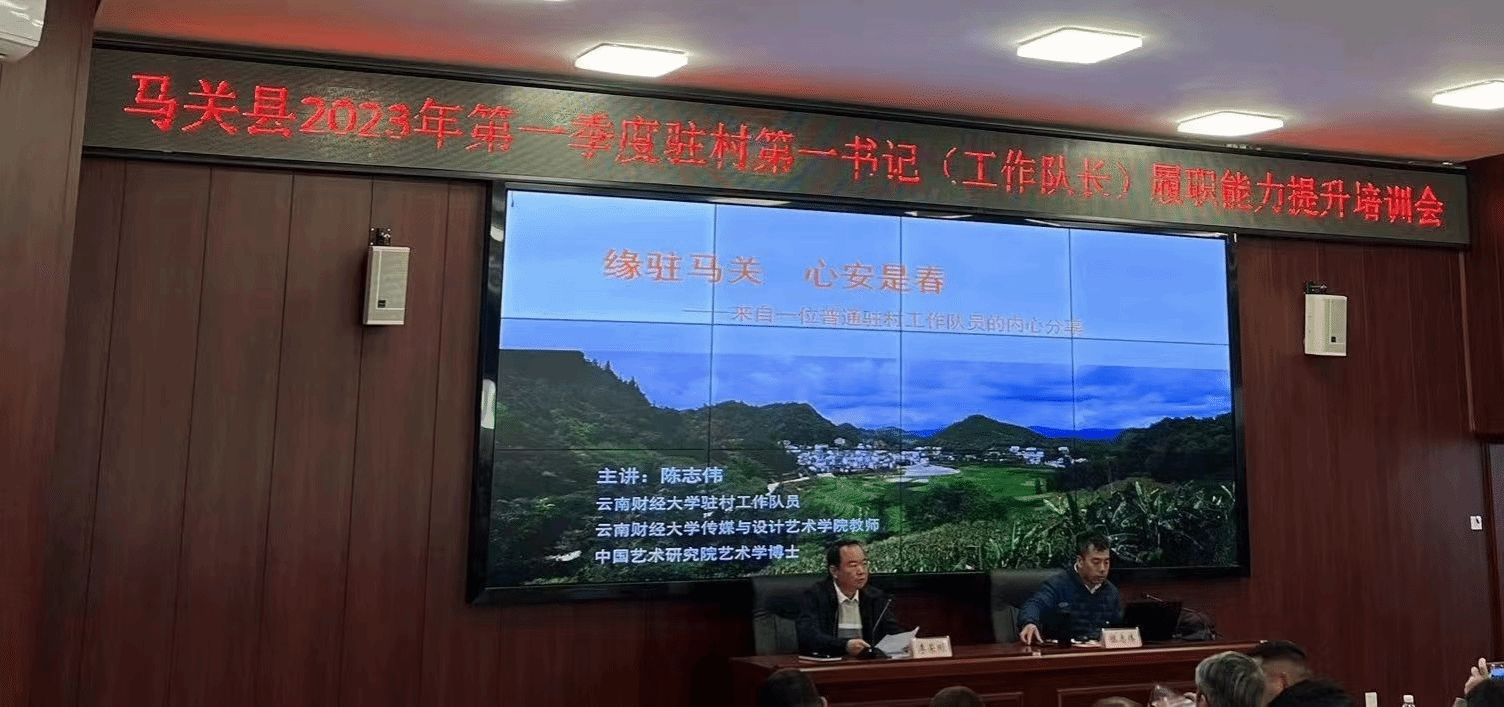 2月27日,由马关县委组织部乡村振兴办主办的“马关县2023年第一季度驻村第一书记(工作队长)履职能力提升培训会”在马关县委党校三楼会议室举行。william威廉中文官网驻村工作队陈志伟博士以“缘驻马关,心安是春”为题就驻村工作作交流分享。马关县全体驻村第一书记(工作队长)以及县委组织部参加培训,培训会由县委组织部副部长李荣刚主持。